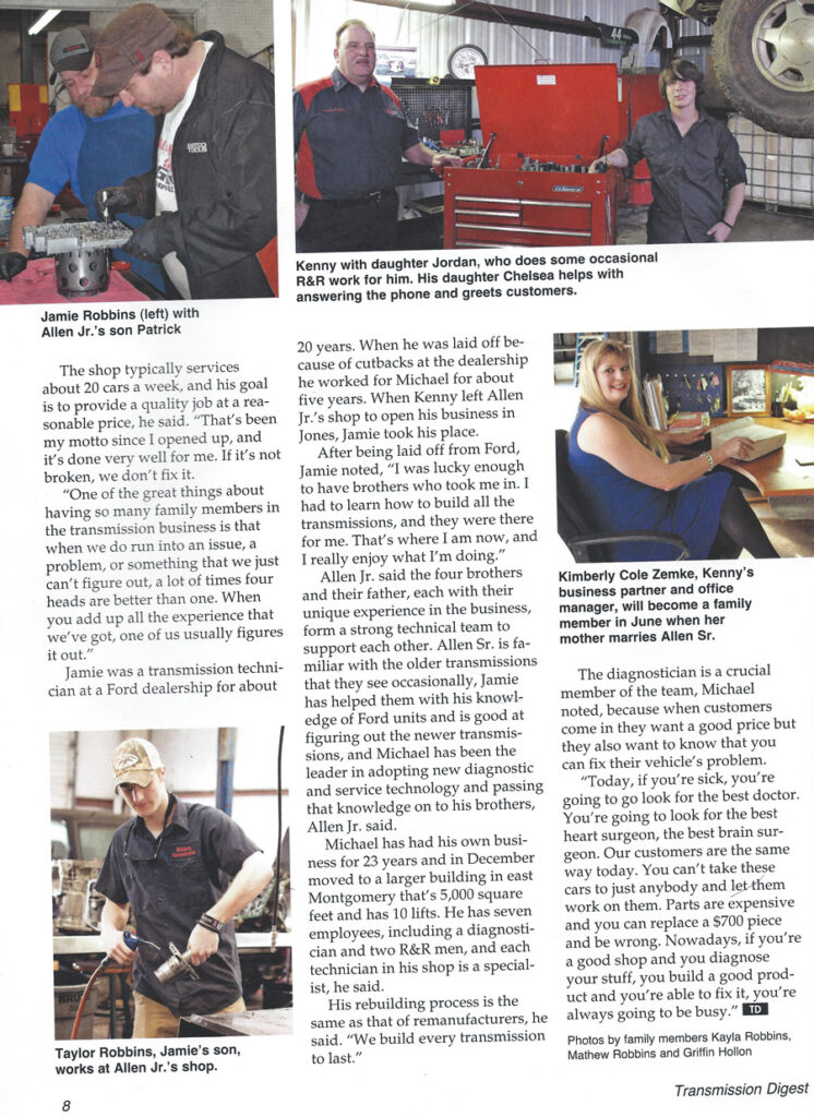 The Robbins Family were featured in the Transmission Digest. We wanted to share the article for your enjoyment:
